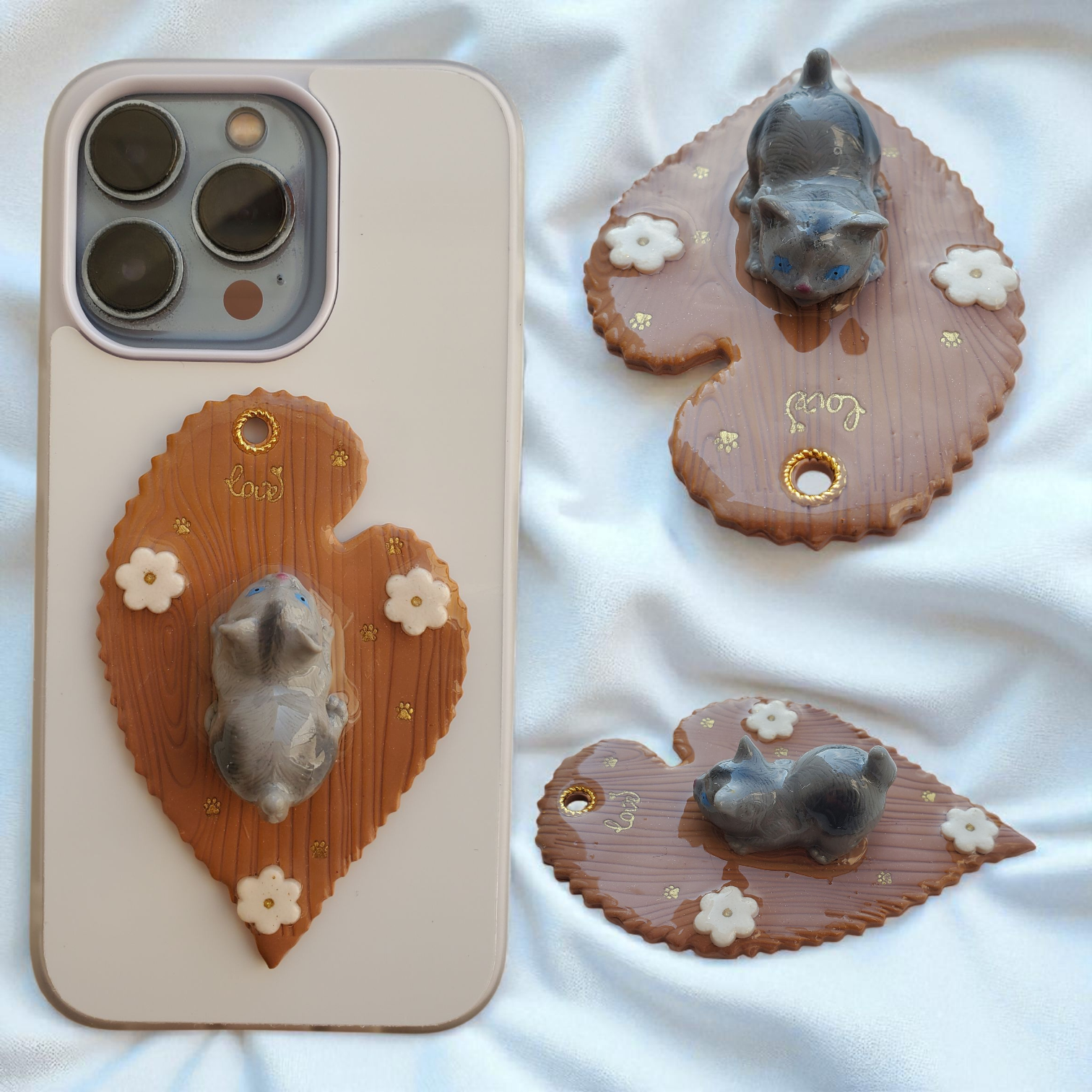 Bijou Chaton joueur gris - Feuille marron