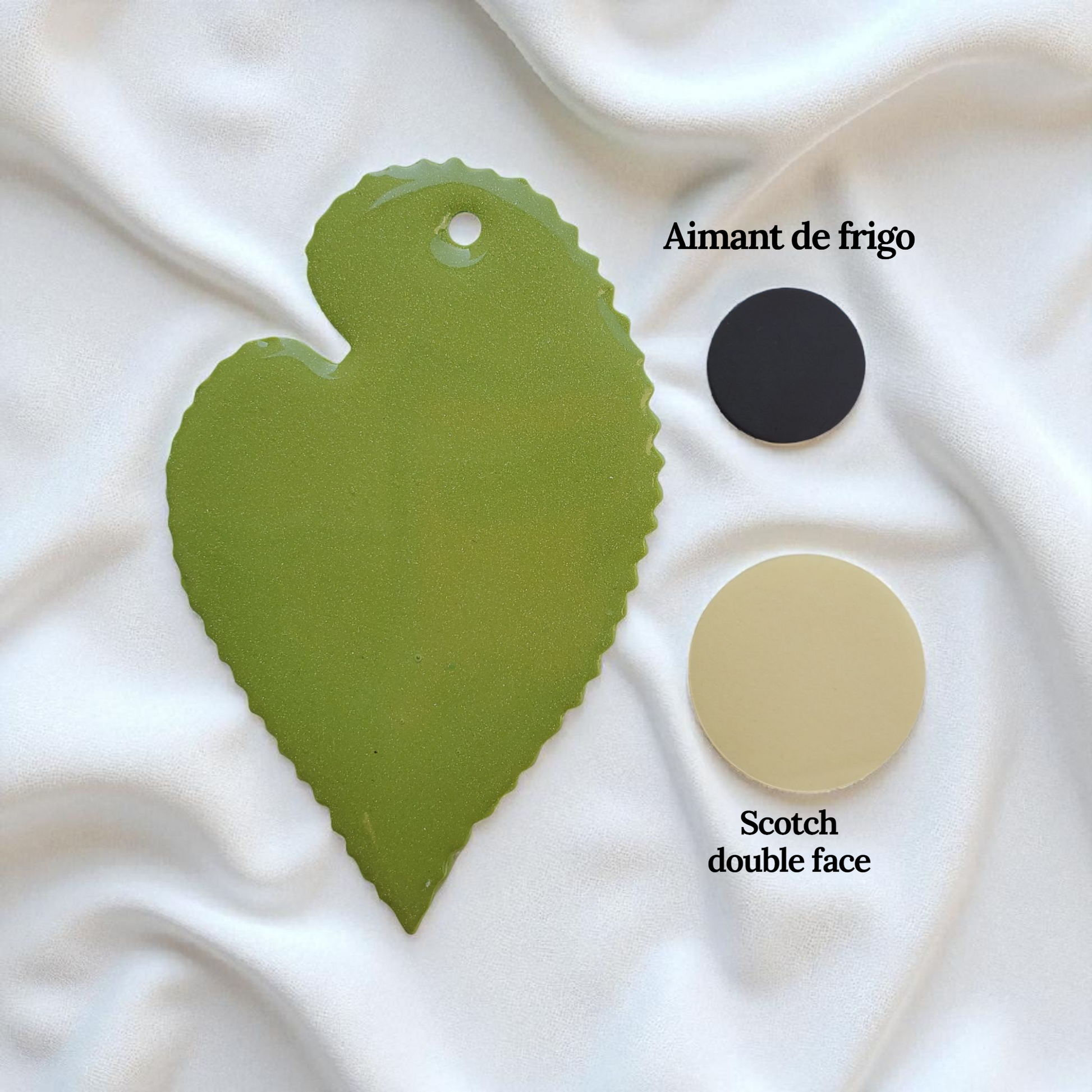 Bijou en argile polymère, peint à la main et vernis à la résine. Chaque bijou est livré avec un scotch double face et un aimant adhésif (à fixer vous-même) et peut servir de :