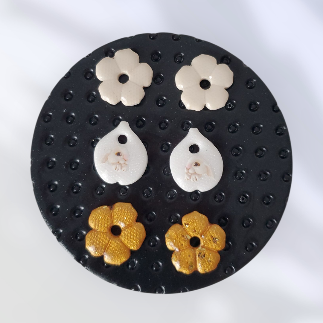 3 paires de pampilles de 16 mm, vendues sans créoles, fabriquées à la main en argile polymère vernies à la résine.