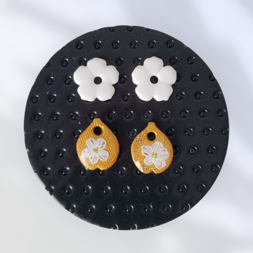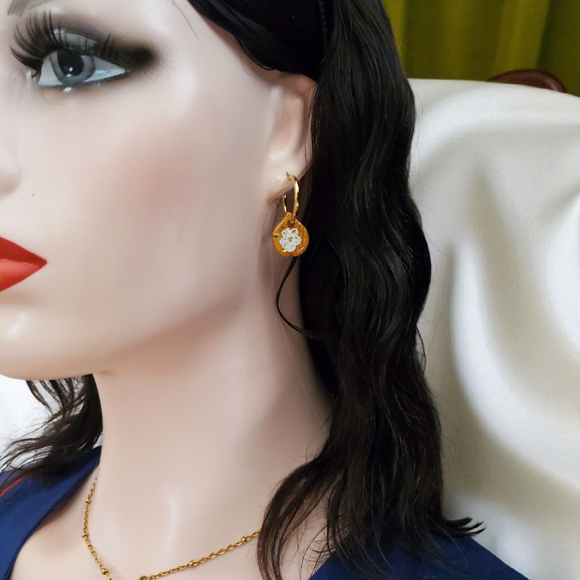 2 paires de pampilles de 16 mm, vendues sans créoles, fabriquées à la main en argile polymère vernies à la résine.