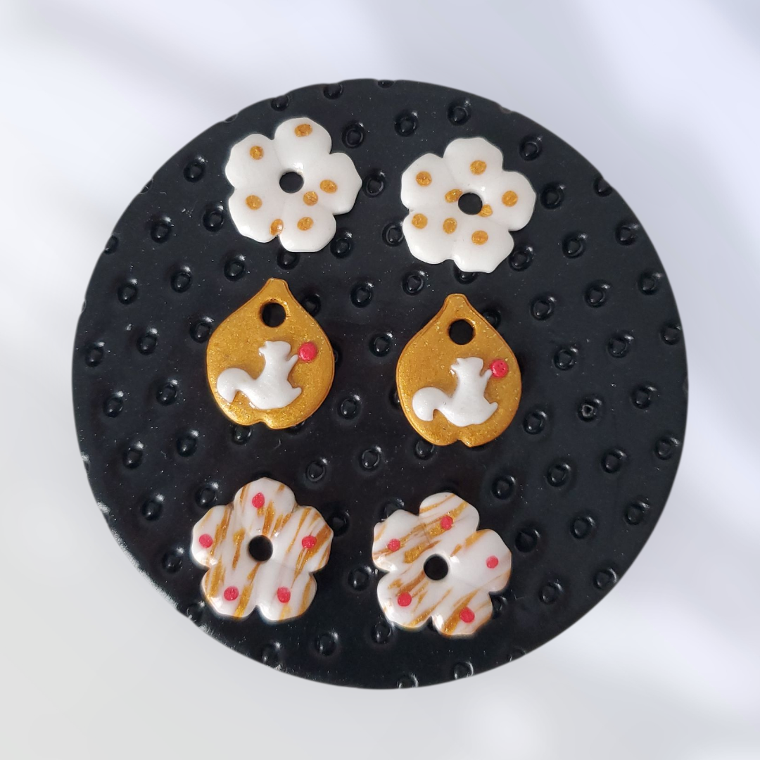 3 paires de pampilles de 16 mm, vendues sans créoles, fabriquées à la main en argile polymère vernies à la résine.