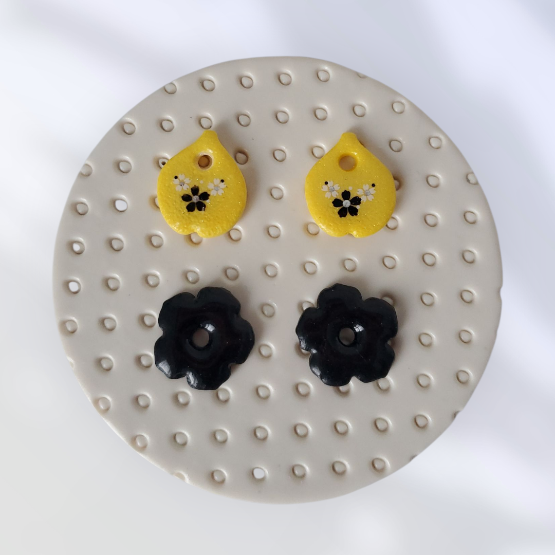 2 paires de pampilles de 16 mm, vendues sans créoles, fabriquées à la main en argile polymère vernies à la résine.