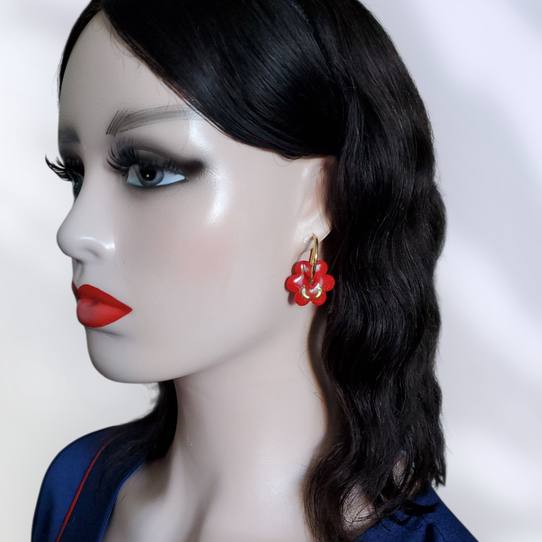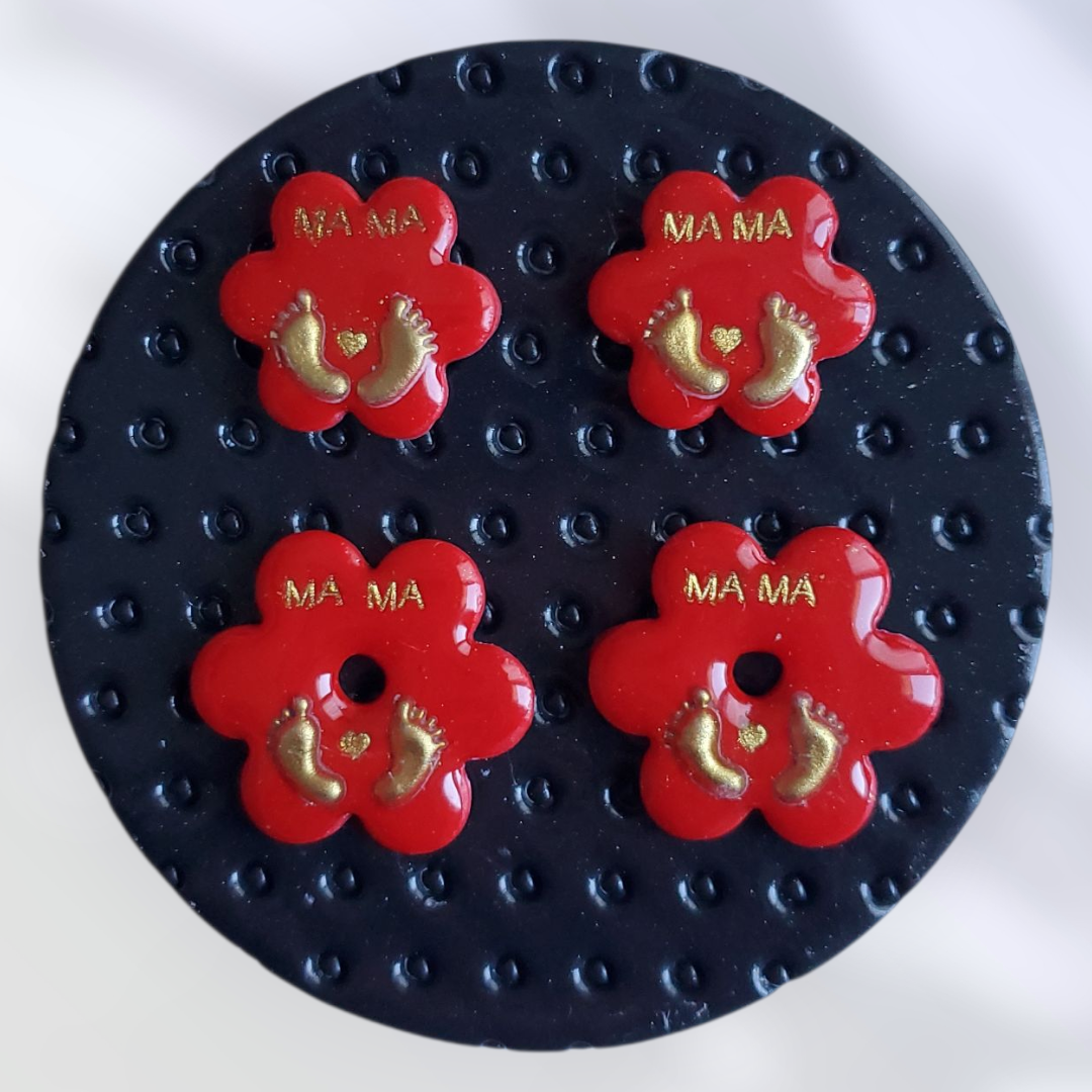 Une paire de pampilles ou de puces gravées MAMA avec 2 pieds de bébé, fabriquées à la main en argile polymère et vernies à la résine.