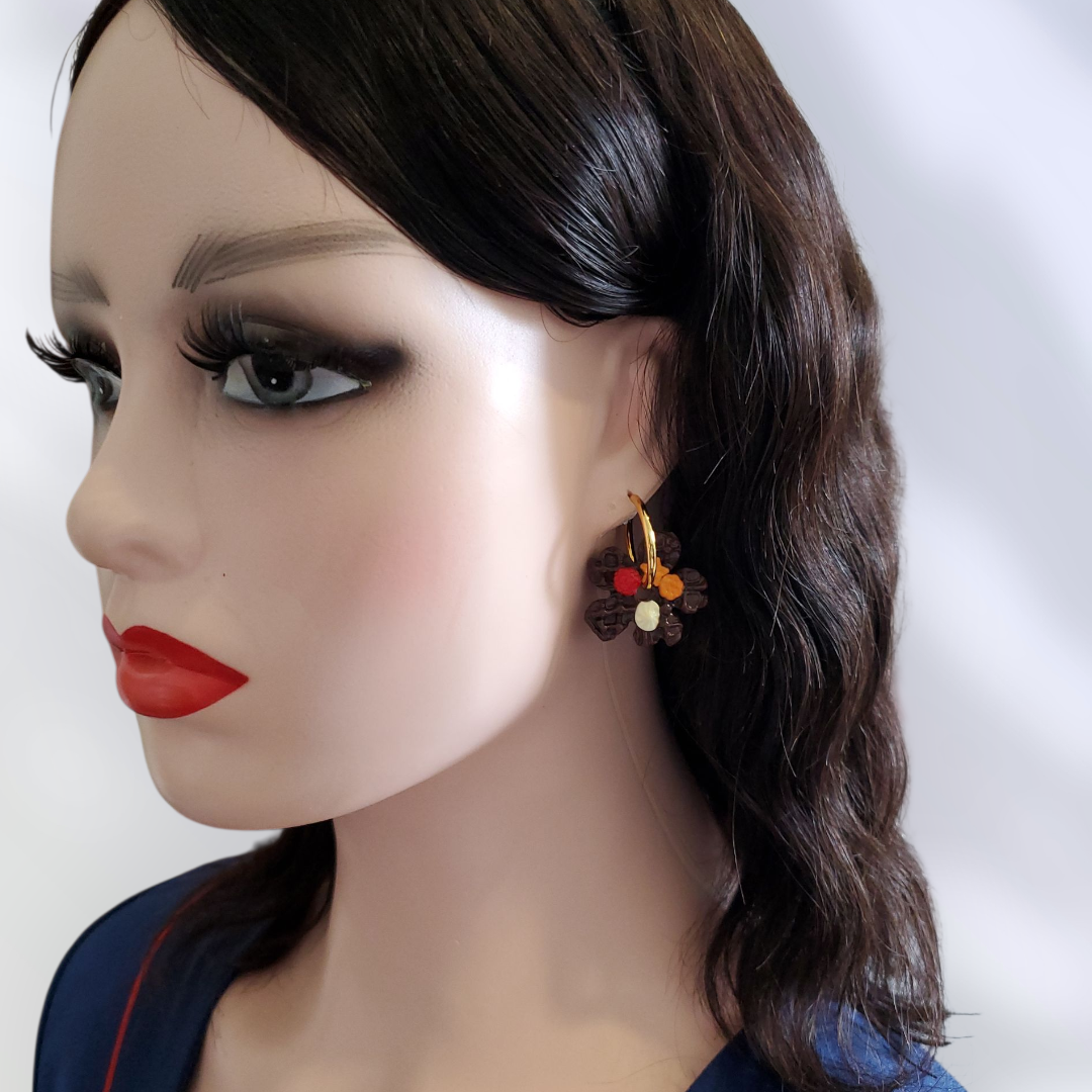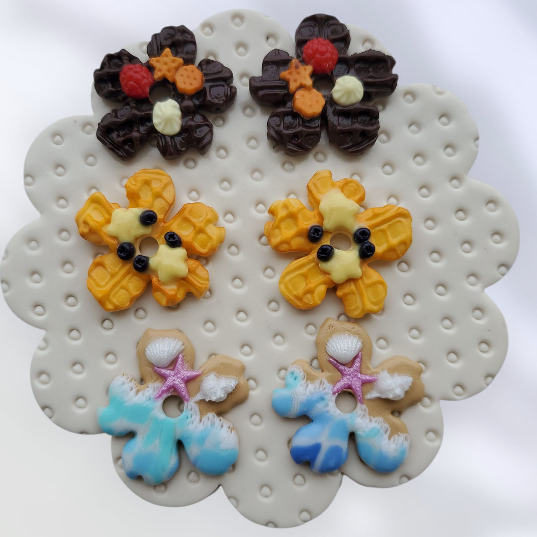 Une paire de pampilles de 30 mm vendues sans créoles, fabriquées à la main en argile polymère et vernies à la résine.