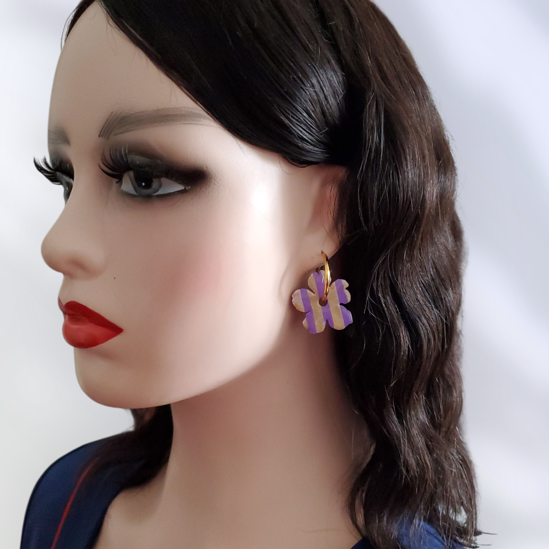 Une paire de pampilles de 30 mm vendues sans créoles, fabriquées à la main en argile polymère et vernies à la résine.